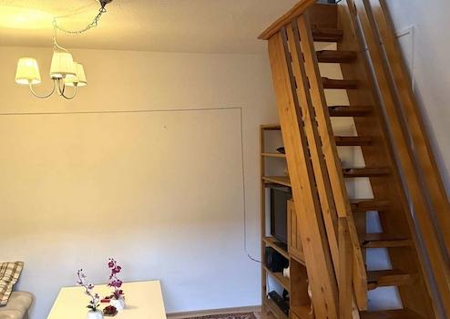 Sie besitzt 2 voneinander unabhängige Wohneinheiten mit je ca. 30 qm, bestehend aus einem Wohnzimmer (14 qm) und der Galerie mit Schlafzimmer (7 qm), Vorraum/Arbeitszimmer (6 qm) und einer Dusche/WC (3 qm) zur komplett eigenen Nutzung (abschließbar). Gemeinsam genutzt werden die Diele, der Essbereich, die kleine Küche und das Gäste-WC (zusammen knapp 20 qm). Die Wohnung ist daher ideal für eine 2er-WG geeignet.