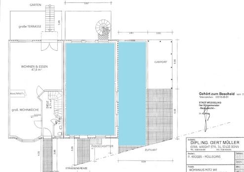 Die zum Verkauf anstehende DHH links mit 377/1000 MEA weist eine Wohnfläche ca. 120 qm, zzgl. große Terrasse auf, wobei die Grundstücksgröße, inkl. Carport und Vorplatz ca. 220 qm beträgt.