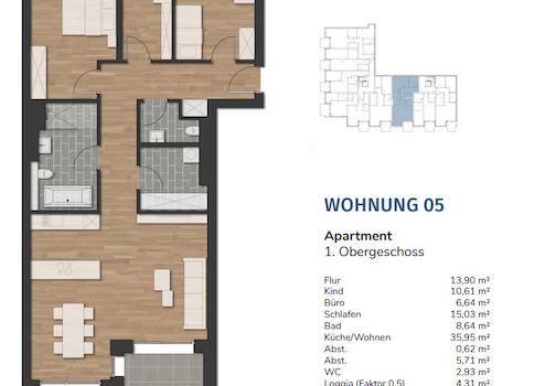 Hochwertige Ausstattungen, nachhaltige Bauweise und Energiekonzepte sorgen für niedrige Betriebskosten und einen hohen Wohnkomfort. Alle Wohnungen werden mit Echtholzparkett ausgestattet.