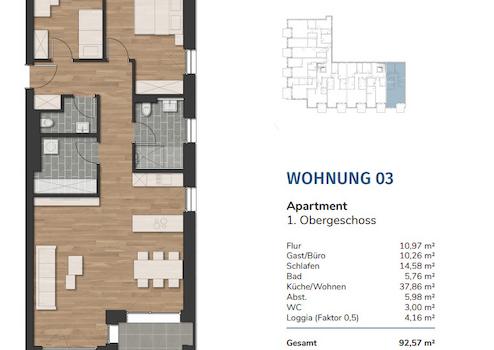 Hochwertige Ausstattungen, nachhaltige Bauweise und Energiekonzepte sorgen für niedrige Betriebskosten und einen hohen Wohnkomfort. Alle Wohnungen werden mit Echtholzparkett ausgestattet.