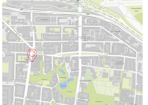Das Tempelhofer Feld ist fußläufig erreichbar, ideal zum Joggen, Drachensteigen oder Entspannen.