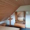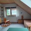 Vom Flur im 1. Obergeschoss erreicht man über eine ausklappbare Leiter den Spitzboden als Abstellraum.