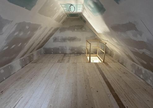 •Ausgebauter großer Dachbodenbereich als Abstellflächen (kein Wohnraum) mit 23 qm und Ausstellfenster , Licht und Strom mit Steigentreppe aus dem Flurbereich