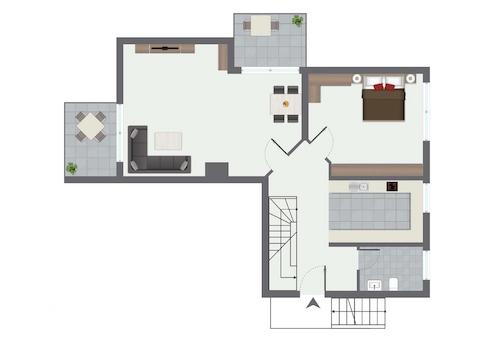 Die Wohnung bietet beste Voraussetzungen für Paare oder Menschen, die großzügig wohnen möchten und die einen Raum z.B. als Home-Office benötigen.