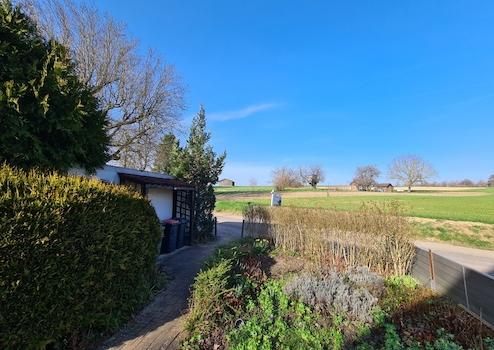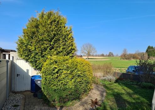Das Familienhaus befindet sich in einer Anliegerstraße direkt an Wiesen und Feldern.
