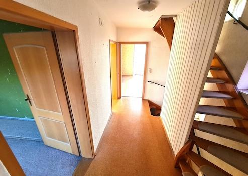 Das Haus muß renoviert (Böden und Tapeten) werden. Die Elektrik ist in die Jahre gekommen, die Zu-/Abwasser-/ sowie die Heizungsleitungen sind aus dem Baujahr, der Wintergarten ist ca. 40 Jahre alt und an einer Stelle nicht ganz dicht, ein paar Fenster müssen getauscht und das Haus nach Ihrem persönlichen Geschmack individualisiert werden.