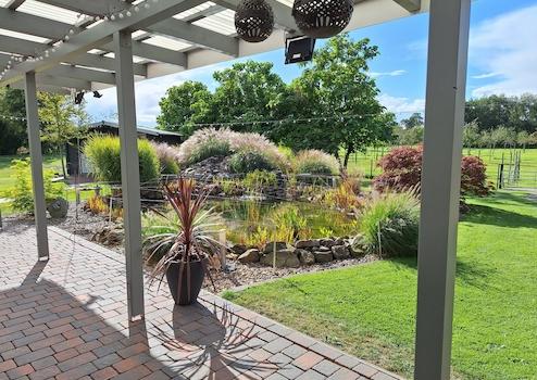 Große Teichanlage mit Fischbesatz direkt an der Terrasse