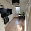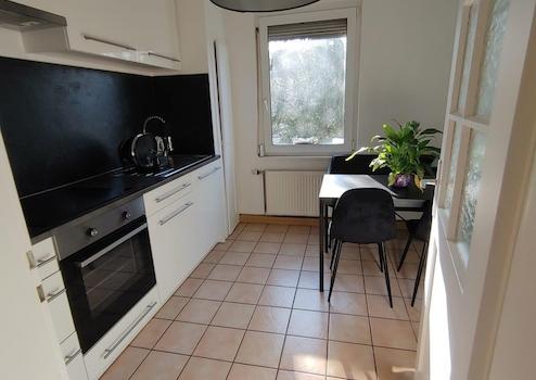 Die Wohnung ist mit Fliesen sowie einem pflegeleichten Laminatboden ausgestattet, was für ein harmonisches und gemütliches Wohnambiente sorgt. Die vorhandene Küchenzeile ist funktional eingerichtet und bietet gemeinsam mit dem Esstisch eine praktische und kompakte Küchensituation.