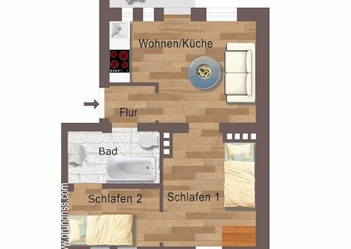 Die gemütliche 2,5-Raumwohnung finden Sie in einem gepflegten Mehrfamilienhaus im nördlich vom Leipziger Zentrum gelegenen Stadtteil Wahren.