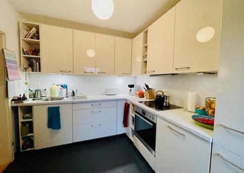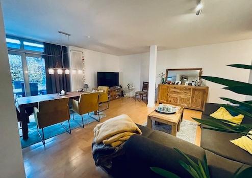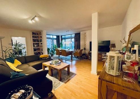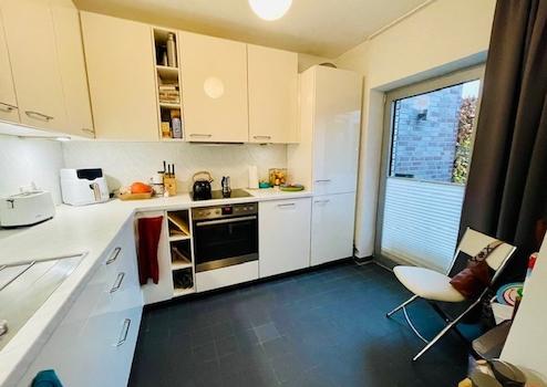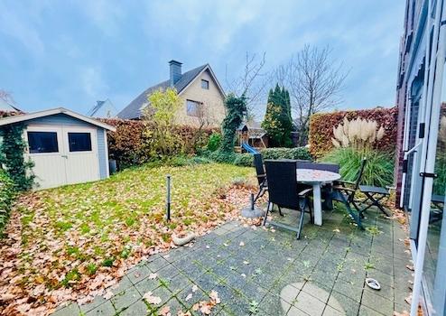 Die Wohnfläche dieser attraktiven Immobilie beträgt 125 m² und teilt sich wie folgt auf: Eingangsbereich (Windfang) mit Garderobe, ein Abstellraum, ein hübsches Gäste-WC mit Dusche, ein Hauswirtschaftsraum mit Anschlüssen für Waschmaschine und Trockner und eine schöne Küche mit direktem Zugang zu einer großen Terrasse (die Einbauküche ist Eigentum des Vermieters und im Mietpreis enthalten). Der äußerst großzügige und helle Wohn- Essbereich mit bodentiefen Fenstern hat ebenfalls einen Ausgang auf die sonnige Terrasse mit Westausrichtung und in den schönen Garten mit Gartenhäuschen. Der Wohnbereich ist mit Parkettboden ausgestattet, im Eingangsbereich, der Küche und dem Gäste-WC liegen graue Fliesen.
