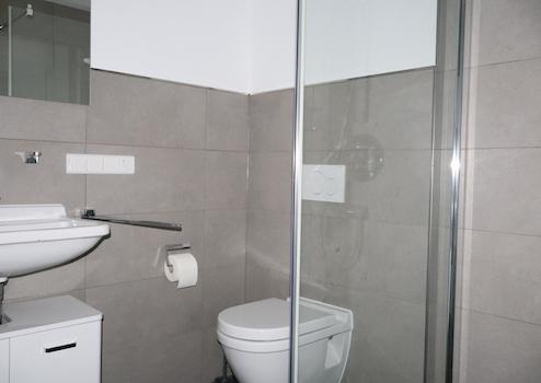 Beide Bäder haben eine Glasdusche, Handtuchheizkörper