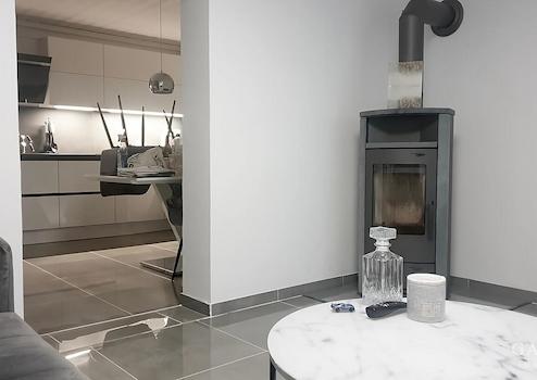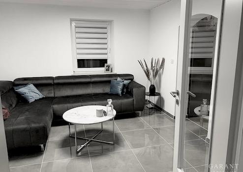 Das Hauptgebäude besteht aus Erdgeschoss, Dachgeschoss und einem ausgebauten Keller. Im Erdgeschoss befinden sich ein Wohnzimmer, eine Küche, ein weiteres Zimmer, ein Badezimmer sowie ein Gäste-WC. Das Schlafzimmer sowie das Kinderzimmer befinden sich im Dachgeschoss. Eine moderne Einbauküche aus dem Jahr 2021 ist bereits integriert und in einem guten Zustand.