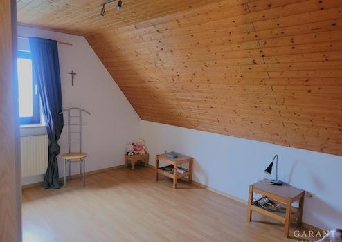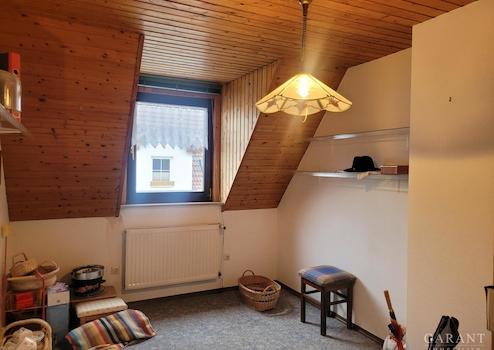 Im Erdgeschoss befindet sich das Wohnzimmer, Badezimmer mit Dusche, die Küche und ein großes Esszimmer. Im Dachgeschoss sind 3 Schlafzimmer, davon 1 Durchgangszimmer.