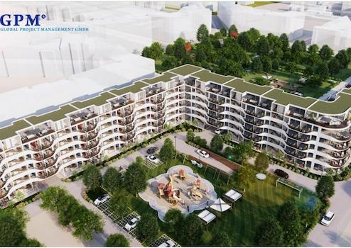 Das Grundstück ist derzeit mit Bestandsgebäuden von insgesamt ca. 3.300 m² Bruttogeschossfläche bebaut. Darüber hinaus besteht Entwicklungspotenzial für bis zu ca. 12.000 m² zusätzliche Neubaufläche.