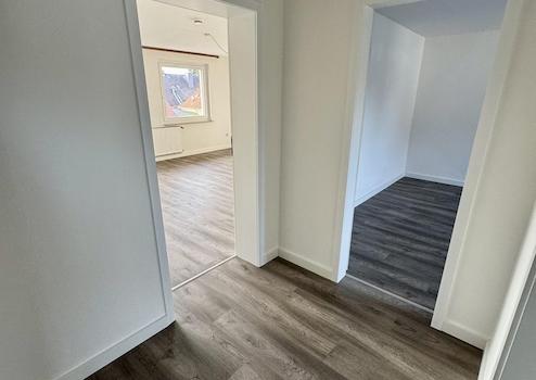 Die helle, renovierte 3-Zimmer-Wohnung überzeugt durch ihren sehr gelungenen Grundriss: Alle Räume gehen vom zentralen Flur ab. In den Wohn- und Schlafräumen sind hochwertige Vinylböden verlegt. Neue, energieeffiziente Fenster verbessern Komfort und Verbrauchswerte in allen Räumen.