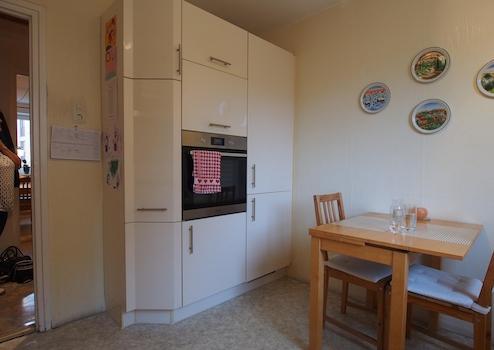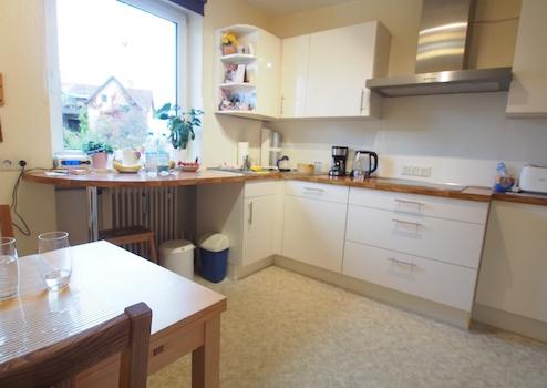 Die Wohnküche ist mit einer Einbauküche und Fenster ausgestattet. Das Fenster geht nach Norden.