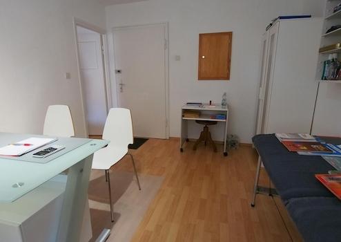 Büro/Praxis und Wohnung liegen nebeneinander im Erdgeschoss. Die Wohnung und Büro/Praxis wird im Januar 2026 renoviert.