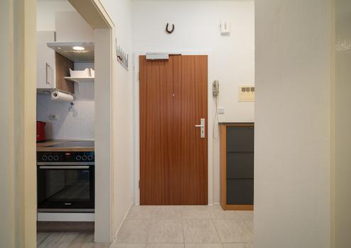 Ein kleiner Flur mit Abstellmöglichkeit verbindet die Räume effizient und bietet zusätzlichen Stauraum – ein Plus im Alltag und in der Nutzung.