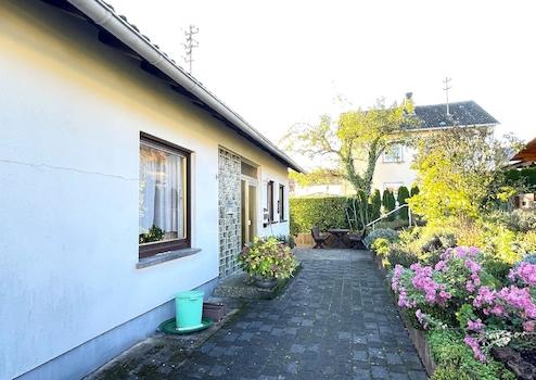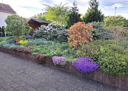 Vom Wintergarten aus, hat man auch einen direkten Zugang zur rückwärtigen Terrasse, die Platz für eine schöne Sitzgruppe und/oder den Sandkasten für die Kleinen bietet. Auf dem hinteren Teil des Grundstücks, das gärtnerisch schön angelegt ist, befindet sich noch ein Holz-Gartenhaus, das zur Unterbringung von Gartengeräten und Gartenmöbel genutzt werden kann. Interessenten mit „grünem Daumen“ werden es lieben, hier und im Vorgarten ihrem Hobby zu frönen und gglfs. noch eigene Ideen umzusetzen.