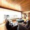 Sehr gemütlich ist auch der lichtdurchflutete Wohn-/Essbereich, ausgestattet mit hochwertigem Holzparkett, vertäfelter Decke, Klinkerwand und einer großen Fensterfront. Von hier aus hat man einen direkten Zugang zum vorgelagerten Balkon (11,9 x 1,5 m), der einen herrlichen Weitblick gestattet, über die Dächer der Umgebungsbebauung bis hin zu der Hügellandschaft am Horizont.