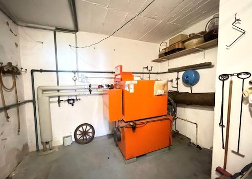 Der hintere Teil des Untergeschosses dient größtenteils als Nutzfläche, aufgeteilt in Waschküche + Heizungsraum… und im seitlichen Bereich, direkt rechts hinter der Hauseingangstür, findet man noch einen kleinen Abstellraum (mit dahinter liegendem Tankraum), in dem auch noch ein praktischer Einbauschrank vorhanden ist, in dem Vorräte, Putzutensilien etc. Platz finden.