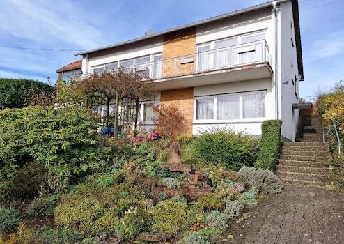Dieses durchdacht und zweckmäßig aufgeteilte Wohnhaus wurde in den Jahren 1968/69, auf einem 510 m² großen Grundstück, in massiver Bauweise errichtet. Es besteht aus Erd- und Untergeschoss + einem (bei Bedarf, noch ausbaubaren) Dachgeschoss. Das Grundstück fällt, zur Straße hin, ab, so dass sich auch, im vorderen Untergeschossbereich, noch Wohnräume befinden. Insgesamt verfügt die Immobilie über ca. 184 m² Wohnfläche.