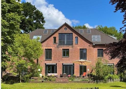 Das Hauptwohnhaus im Herrenhaus-Stil besticht durch hohe Decken, großzügige Räume, bodentiefe Fenster und einen traumhaften Blick auf Garten, Koppeln, Teich und das bewohnte Storchennest. Kamin, Sauna, große Küche, drei Terrassen (zwei mit Glasdach) sowie ein separater Gäste-/Au-pair-Bereich mit Bad bieten höchsten Wohnkomfort. Das voll ausgestattete Loft mit Sauna eignet sich ideal für Homeoffice, Events, Coaching, Workshops oder zur Vermietung. Ein liebevoll gestalteter Bereich mit drei Gäste-WCs kann vom Loft Eingangsbereich, als auch vom Haupthaus betreten werden.