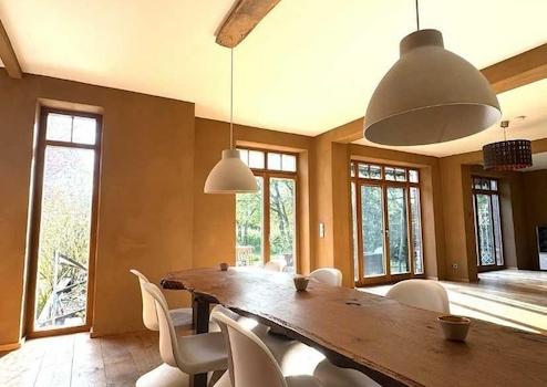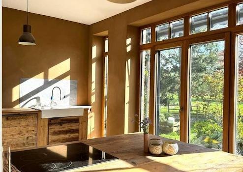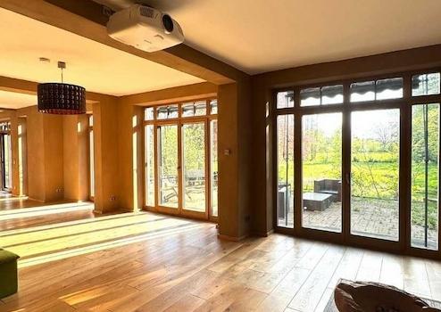 Das Wohnhaus thront auf einer Anhöhe und besticht durch absolute Ruhe und eine traumhafte Aussicht: Bodentiefe Fenster geben den Blick frei auf Garten, Pferdekoppeln, Storchennest und Teich. Der im Herrenhaus-Stil erbaute Hof vereint ländlichen Charme mit höchstem Wohnkomfort: Hohe Decken, Eichen-Dielen, großzügige Räume, Lehmwände mit Wandheizung, dreifach verglaste Fenster und hochwertige Fliegengitter sorgen für ein angenehmes Raumklima – im Winter warm, im Sommer kühl. So können Sie nachts ungestört die frische Luft und die Natur genießen.
