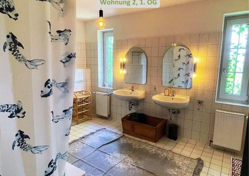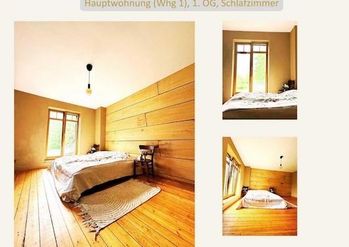 Der Alte Südhof bietet ein außergewöhnliches Ensemble für Wohnen, Arbeiten und artgerechte Tierhaltung – ideal für Familien, Mehrgenerationenprojekte, Selbstversorger, Selbständige oder Event-Anbieter. Insgesamt stehen ca. 800 m² Wohnfläche in drei (eigentlich vier) Wohneinheiten zur Verfügung, ergänzt durch eine Ausbaureserve von ca 235 m² sowie ein direkt angrenzendes Baugrundstück (951 m²) und ein bisher ungenutztes, romantisches Backstein-Spritzenhäuschen, das sich als Tiny-Haus eignen könnte. Der Zukauf von 2,5 ha Wald ist möglich. Die Kernsanierung erfolgte 2013–2016 mit Fokus auf baubiologischer Qualität und Energieeffizienz (Klasse C). Alle Wohnräume im Haupthaus sind mit Lehmputz, Wandheizung und hochwertigen Holz-/Steinböden ausgestattet. Dreifach verglaste Holz-Alu-Fenster mit Insekten- und Pollenschutz sorgen für ein gesundes Raumklima und Ruhe.