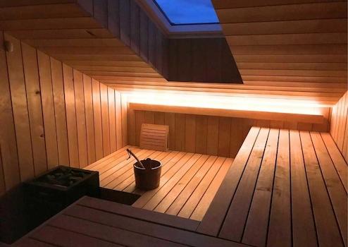 Balkon, Terrasse, Garten, Keller, Vollbad, Duschbad, Sauna, Einbauküche, Gäste-WC, Kamin, Parkett, Fliesen