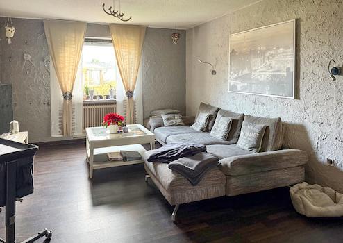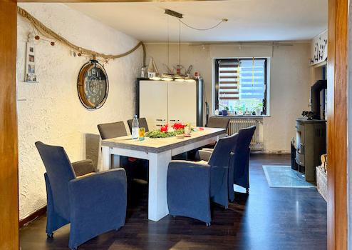 Dieses renovierungsbedürftige Einfamilienhaus aus ca. 1950 bietet auf rund 140 m² Wohnfläche und einem weitläufigen Grundstück von ca. 1.500 m² viel Platz. Der zweigeschossige Massivbau überzeugt mit einer guten Raumaufteilung: Im Erdgeschoss befinden sich ein Schlafzimmer, ein großer Wohn- und Essbereich mit Kaminofenanschluss, eine Küche sowie ein Gäste-WC – ideal für ältere Personen oder barrierearme Wohnkonzepte. Im Obergeschoss stehen drei weitere Zimmer und ein Bad bereit. Der Vollkeller mit vier Räumen sorgt für viel Stauraum. Auf dem Grundstück befinden sich außerdem eine große ehemalige Scheune /z.T. vermietet mit drei Teilbereichen sowie ein Garagengebäude, die vielfältige Möglichkeiten für Hobbys, Werkstatt, Lager oder zusätzliche Fahrzeuge bieten. Die großzügige Hofeinfahrt schafft weitere Stellplätze. Das Objekt wird zu Ende Januar 2026 frei.