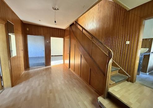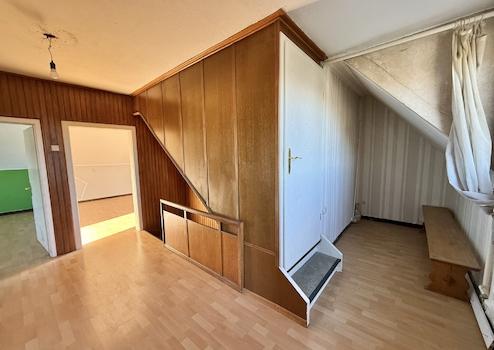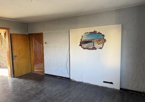Dieses renovierungsbedürftige Einfamilienhaus aus ca. 1950 bietet auf rund 129 m² Wohnfläche und einem weitläufigen Grundstück von ca. 1.500 m² viel Platz. Der zweigeschossige Massivbau überzeugt mit einer guten Raumaufteilung: Im Erdgeschoss befinden sich ein Schlafzimmer, ein großer Wohn- und Essbereich mit Kaminofenanschluss, eine Küche sowie ein Gäste-WC – ideal für ältere Personen oder barrierearme Wohnkonzepte. Im Obergeschoss stehen drei weitere Zimmer und ein Bad bereit. Der Vollkeller mit vier Räumen sorgt für viel Stauraum. Auf dem Grundstück befinden sich außerdem eine große ehemalige Scheune /z.T. vermietet mit drei Teilbereichen sowie ein Garagengebäude, die vielfältige Möglichkeiten für Hobbys, Werkstatt, Lager oder zusätzliche Fahrzeuge bieten. Die großzügige Hofeinfahrt schafft weitere Stellplätze.