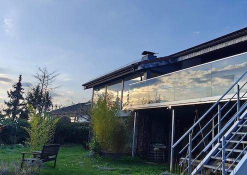 Das Haupthaus überzeugt durch offene, lichtdurchflutete Wohnräume, hochwertige Materialien und viel Privatsphäre. Die bodentiefen Fenster öffnen sich auf die Sonnenterrasse; der weitläufige Garten lädt zum Entspannen, Spielen oder Gärtnern ein. Dank eines intelligenten Energiekonzepts wird die Südausrichtung optimal genutzt.
