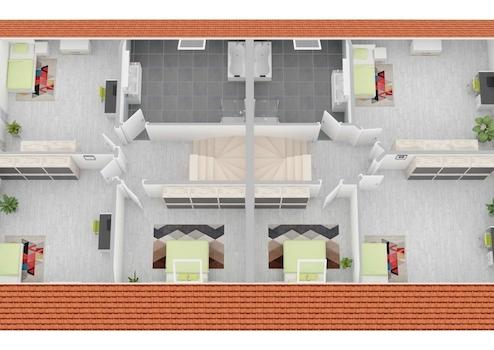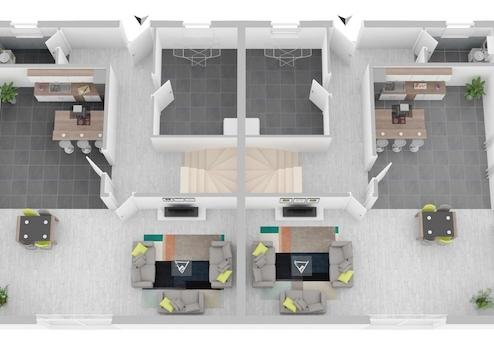die visualisierten Grundrisse und die Außendarstellungen dienen nur der besseren Darstellung der Räume, kleine Abweichungen sind möglich. Die gezeigten Fotoaufnahmen stellen Musterfotos dar. Die tatsächlichen Baugegebenheiten ergeben sich aus der Baubeschreibung.