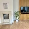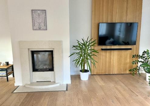 großzügigen Wohnbereich führt. Dieser beeindruckt mit bodentiefen Fenstern, einem gemütlichen Kamin und dem Zugang zur Terrasse, sowie in den liebevoll angelegten Garten.