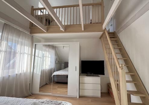 Zwei gleich große Kinderzimmer, jeweils im Maisonette-Stil mit offener Galerieebene, schaffen ein einzigartiges Raumgefühl und bieten vielseitige Nutzungsmöglichkeiten.