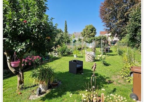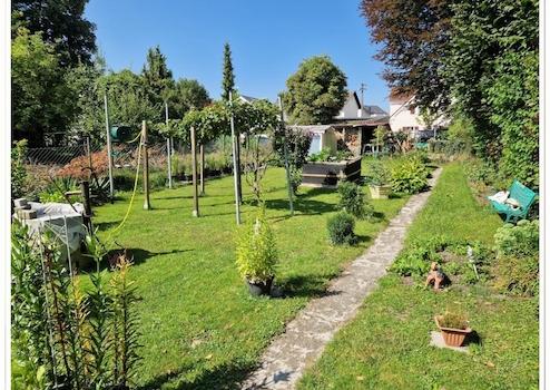Das Anwesen ist vermietet. Nachdem 2 Häuser gebaut werden dürfen, kann den Mietern u.U. das Weiterwohnen in einem der beiden Häuser angeboten werden, mit Nutzung eines Teils des großen Westgartens.