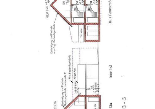 Aktuell ist das Grundstück mit zwei Altgebäuden bebaut, die gemäß genehmigtem Vorbescheid abgebrochen werden dürfen. Die Ersatzbauten dürfen gleiches Ausmaß haben, bzw. darf das westliche Haus etwas höher werden, im Angleich an das auf dem südlich anschließenden Grundstück befindliche Haus. Unser Exposé enthält die wesentlichen Teile der genehmigungsfähigen Planung.