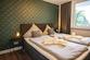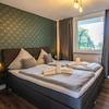 Schlafzimmer mit komfortablem Bett sowie Kleiderschrank und Stauraum