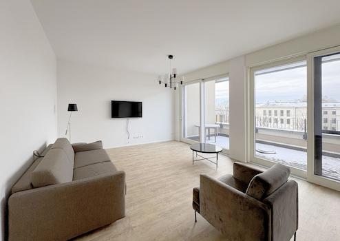 Auf ca. 96 m² Wohnfläche können Sie Ihre Wohnträume in Erfüllung gehen lassen. Genießen Sie den Blick von Ihrer nach Westen ausgerichteten Dachterrasse und lassen die Seele baumeln. Der helle und großzügig geschnittene Wohnbereiche lädt zum verweilen ein. Hier finden Sie Platz für gemütliche Abende auf dem Sofa, bei Dinnerpartys am Esstisch oder auf kulinarischen Reisen durch Ihre eigene hochwertige Küche inklusive Einbauküche.