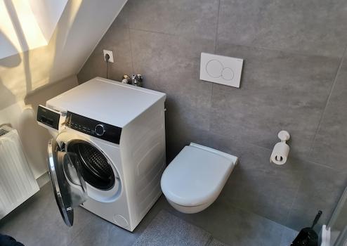 Dieser rd. 47qm 2-Zimmer-Wohnung im 2024 neu ausgebauten Dachgeschoss ist ein Wohntraum. Genießen Sie eine effiziente Dachdämmung, eine 2023 neueingebaute Gas-Zentral-Heizung, ein Badezimmer mit großer Dusche, einem Fenster und Waschmaschinenanschluss. Über die offene Wohnküche gelangt man auf den Balkon. Über den hinteren Bereich des Wohnzimmers gelangt man in das Schlafzimmer.