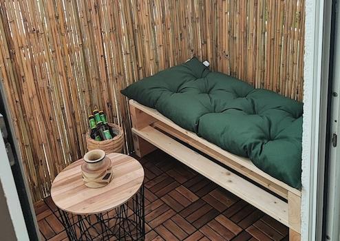 Der sonnige Balkon ist ein perfekter Ort für den Morgenkaffee.