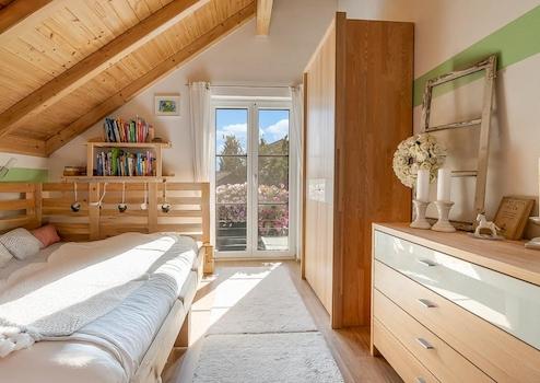 Im Obergeschoss schenkt der sichtbare Dachstuhl den Räumen Leichtigkeit. Drei Schlafzimmer bieten Raum für Familie, Gäste oder Homeoffice. Zwei Bäder bringen Komfort in den Alltag: im Erdgeschoss ein Duschbad mit WC (ideal auch als Gäste-WC), im Obergeschoss ein großzügiges Vollbad mit Dusche und Badewanne. In Erd- und Obergeschoss sorgt Fußbodenheizung für behagliche Wärme.