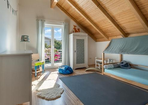 Sichtbarer Dachstuhl im Obergeschoss für ein Gefühl von Leichtigkeit und Weite