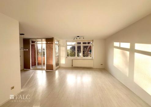 Das großzügige und helle Wohnzimmer mit seiner offenen Küche lädt Sie zu gemütlichen Stunden ein. Von hier gelangen Sie auf den sonnigen Balkon mit Blick ins Grüne, auf dem Sie wunderbar die Seele baumeln lassen können.
