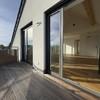 Bodentiefe Fensterfronten schaffen helle, lichtdurchflutete Räume, während die großzügige Terrasse zum Entspannen und Verweilen einlädt.