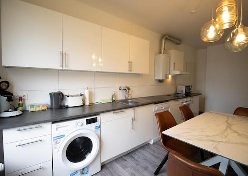 Die Wohnung ist voll möbliert und bietet alles, was man für einen komfortablen Einzug benötigt – ganz ohne Aufwand. Jedes Zimmer ist mit einem Bett, Smart-TV, Schreibtisch, Bürostuhl, Nachttisch, Beleuchtung sowie einem Kleiderschrank ausgestattet.