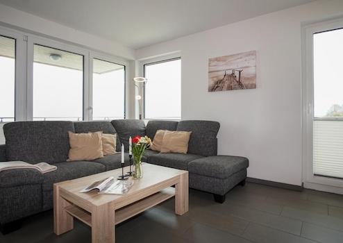 Diese Penthause Eigentumswohnung mit ca. 82 qm Wohnfläche (Gesamtfläche = ca. 131 qm inkl. Dachterrasse) im Dünenpark in Heiligenhafen öffnet Ihnen die Tür zu einem freien und unverbaubaren Panoramablick über die gesamte Ostsee bis Fehmarn, dem Gebiet Stein- und Graswarder, dem Yachthafen und über dem Binnensee. Je nachdem auf welcher Position Sie sich auf der großzügigen Dachterrasse befinden.