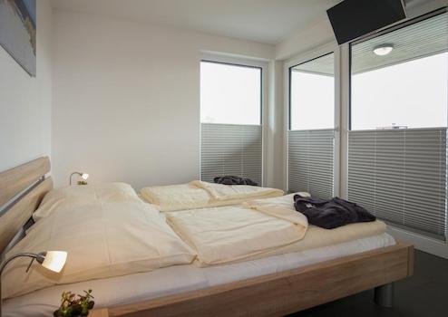Zurück über den kleinen Flur erreichen Sie die beiden Schlafzimmer, die ebenfalls mit bodentiefen Fenstern ausgestattet sind. Das größere Schlafzimmer bietet ebenfalls einen direkten Zugang auf die großzügige Dachterrasse. Beide Zimmer punkten wieder mit einem fantastischen Blick. Die hellen Wände und die moderne Aufmachung verleihen auch diesen Räumen wieder ein zeitloses Flair.