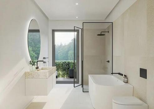 • Wand- und Bodenfliesen im Bad und Gäste-WC (wahlweise, Materialpreis 40 €/qm)